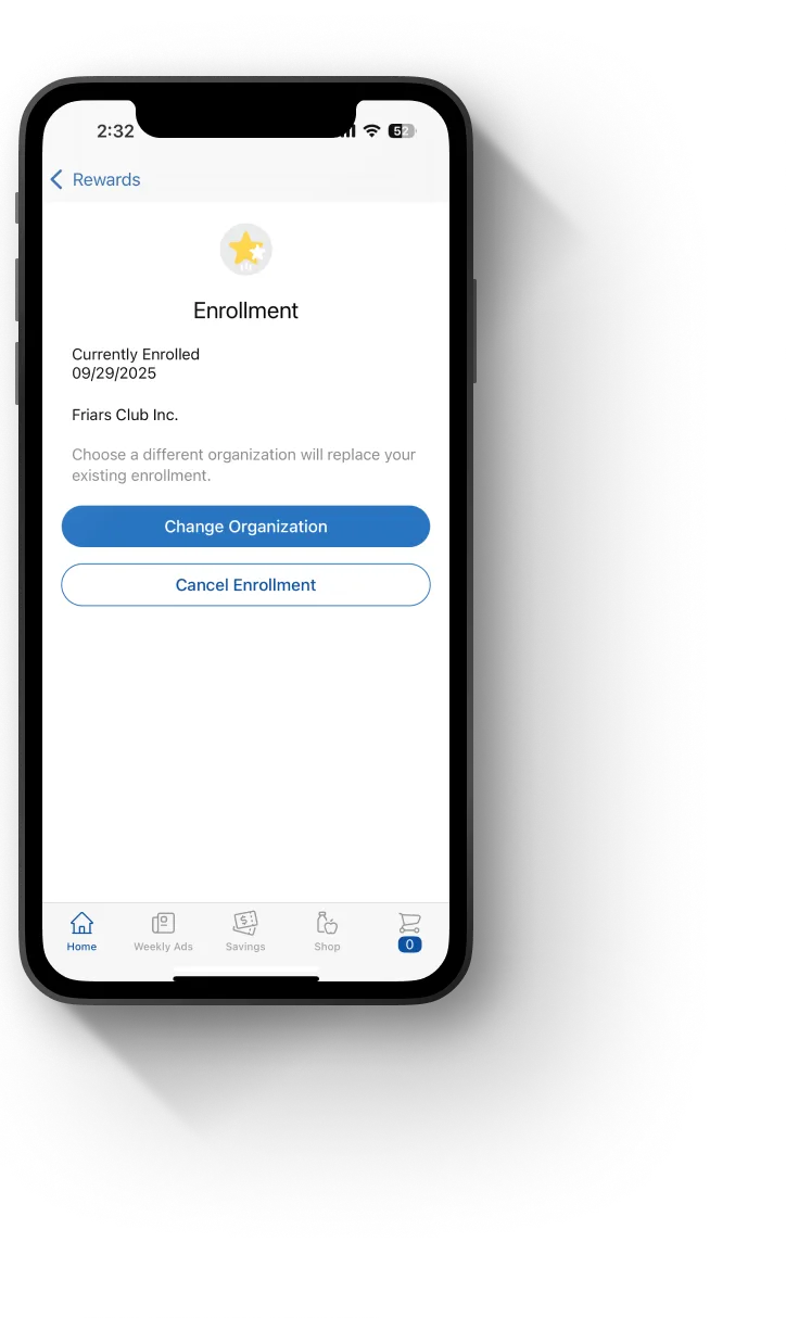 Inside of the Rewards menu selection, you will see Community Rewards, select this to start the "Enrollment" process.